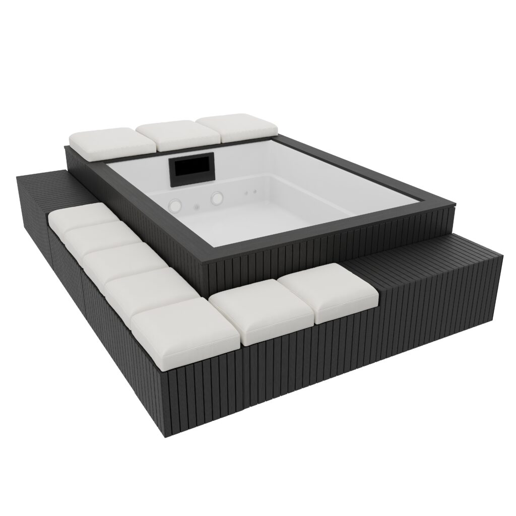 Avec son encombrement de 3 mètres, Mirage est idéale pour les terrasses, les patios ou les salles de bien-être intérieures, offrant le luxe d’un spa avec le raffinement d’une piscine design.